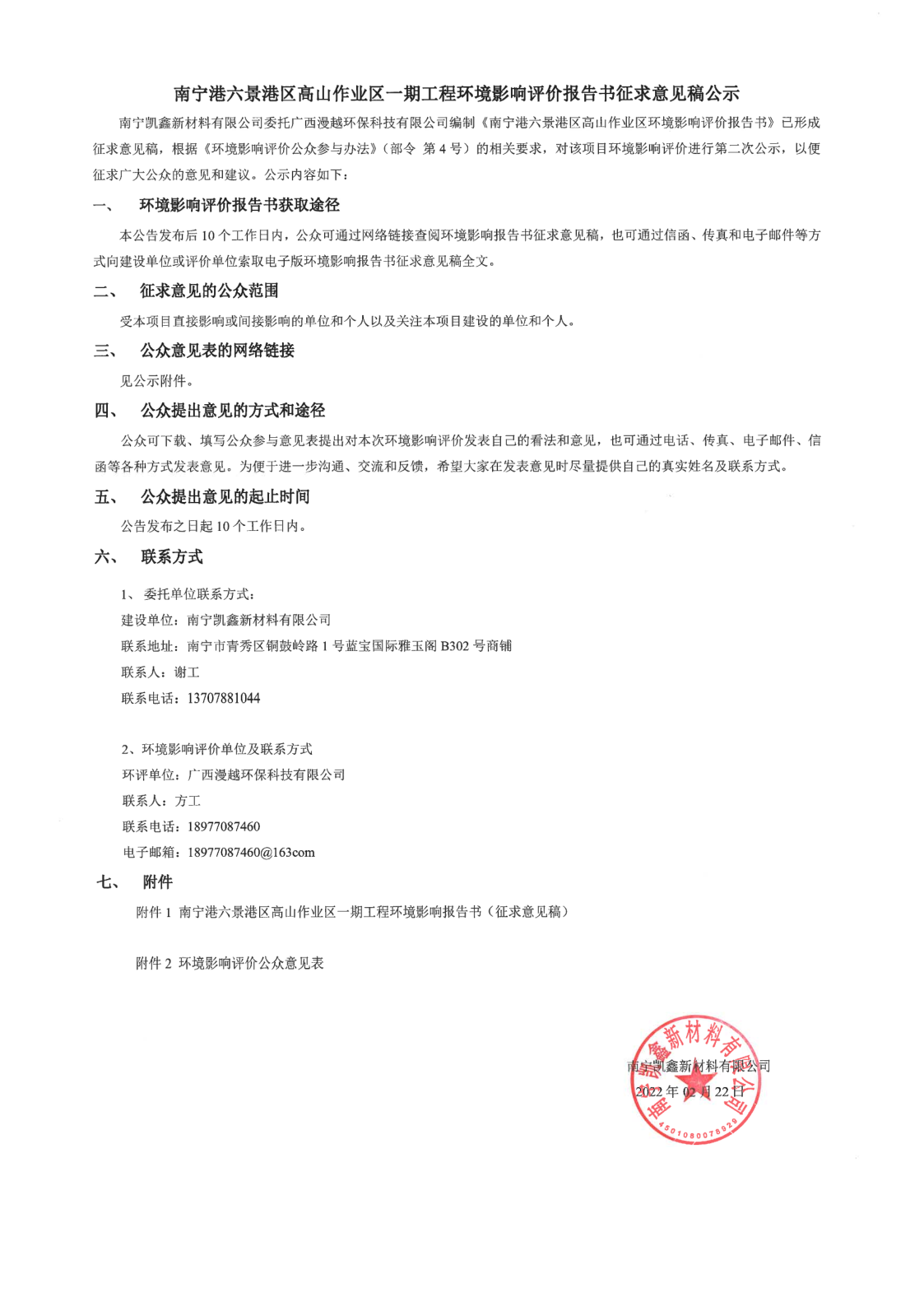 南寧港六景港區(qū)高山作業(yè)區(qū)一期工程環(huán)境影響評(píng)價(jià)報(bào)告書征求意見(jiàn)稿公示